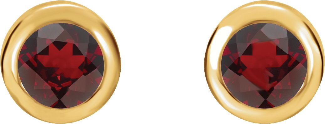 14K Yellow 4 mm Round Genuine Mozambique Garnet Birthstone Earrings