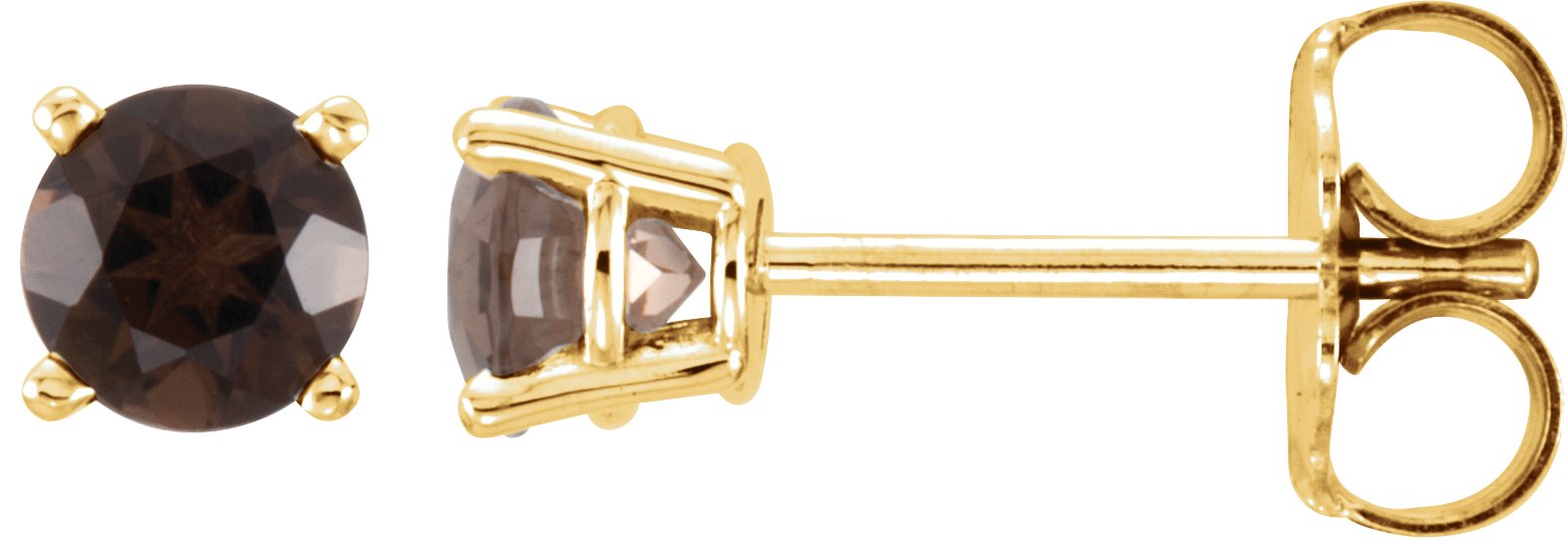 14K Yellow 4 mm Round Smoky Quartz Earrings