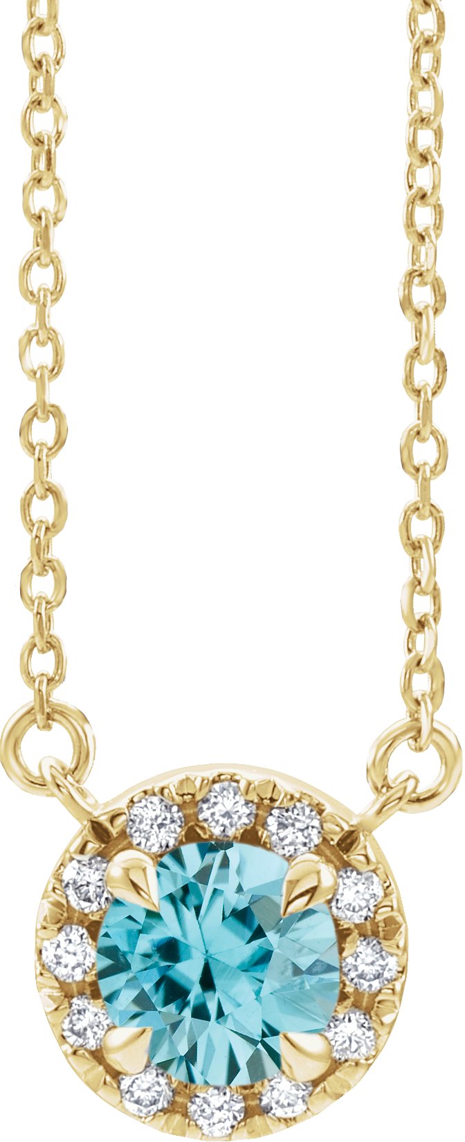 14K Yellow 4.5 mm Round Blue Zircon & .06 CTW Diamond 16 inch Necklace