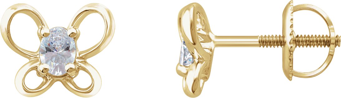 14K Yellow 4x3 mm Oval April Youth Butterfly Birthstone Earrings
