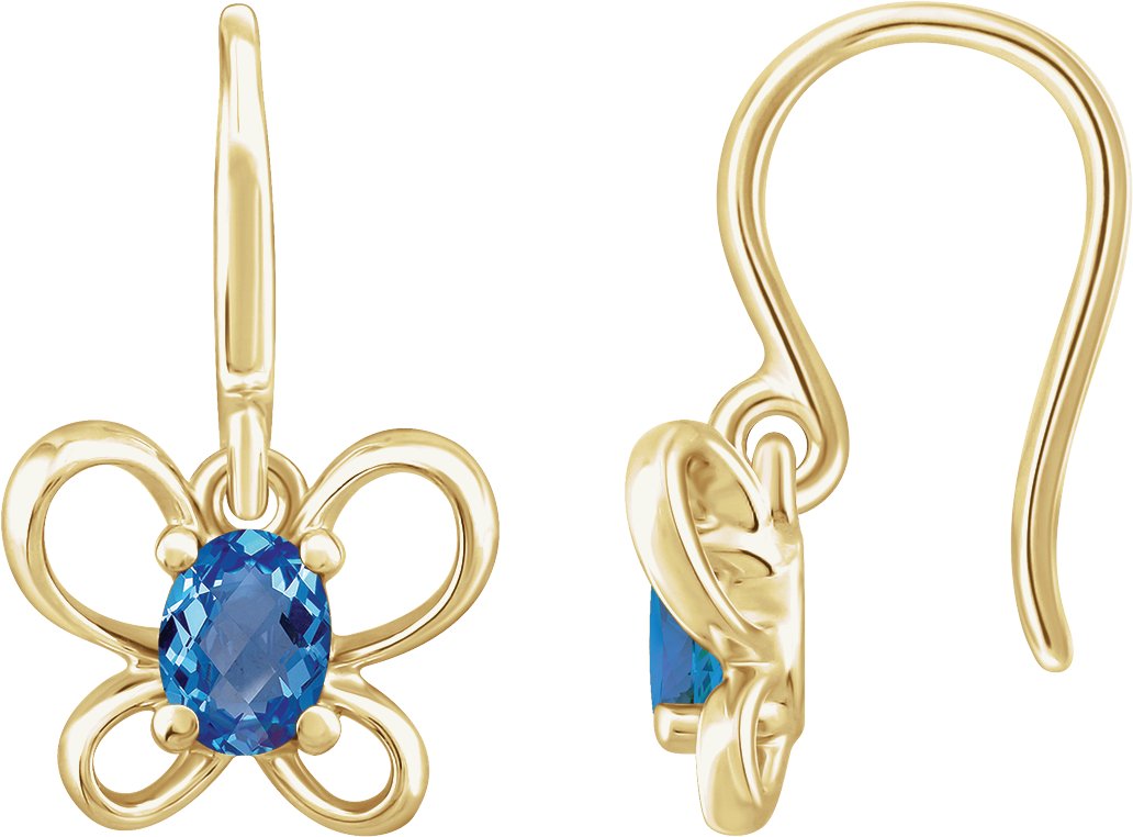 14K Yellow 4x3 mm Oval December Youth Butterfly Birthstone Earrings