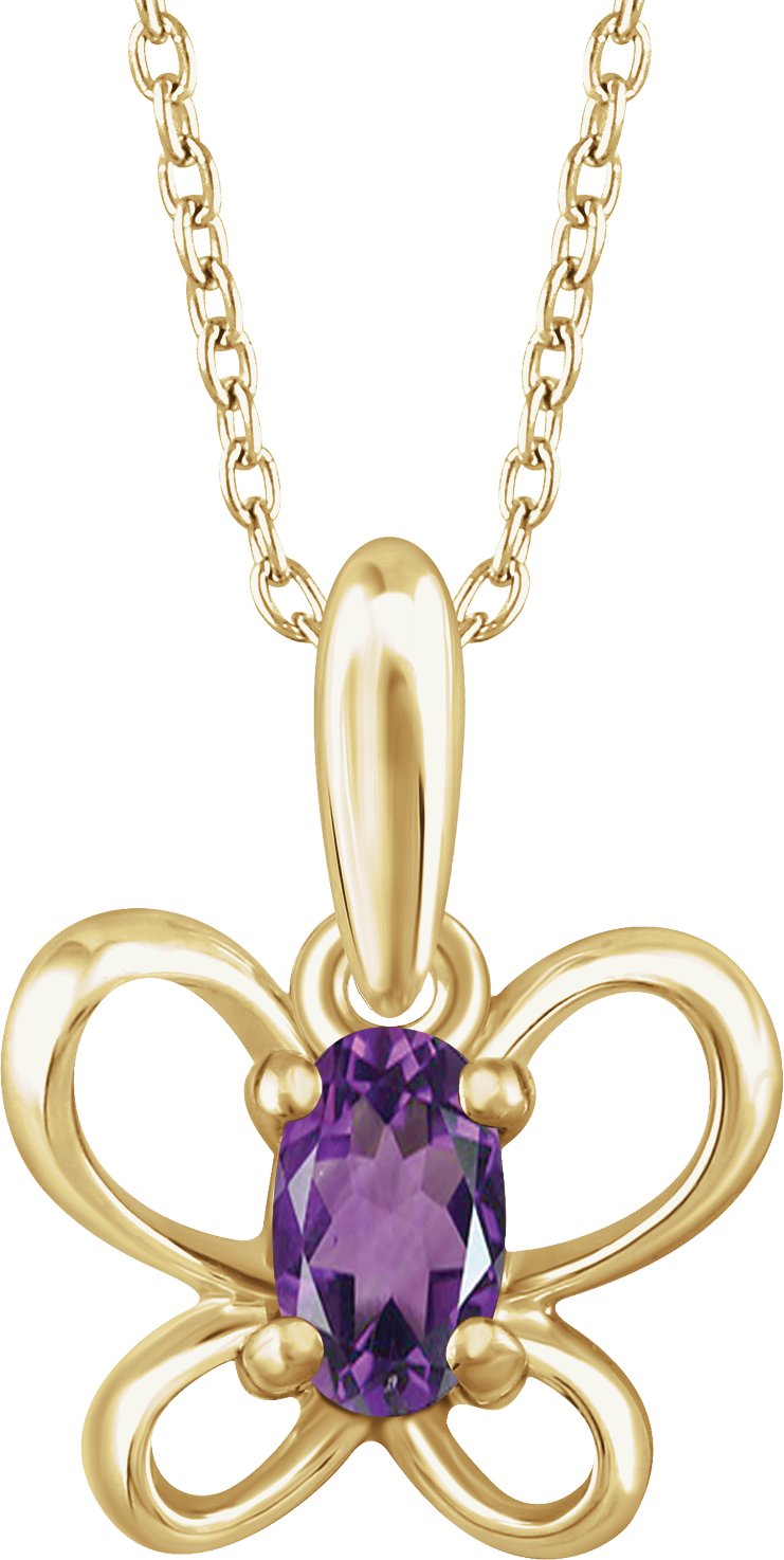 14K Yellow 4x3 mm Oval February Youth Butterfly Birthstone 15 inch Necklace