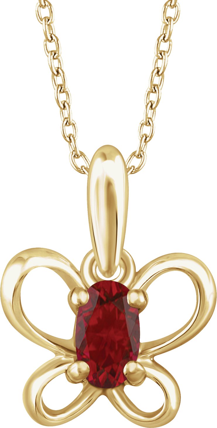 14K Yellow 4x3 mm Oval January Youth Butterfly Birthstone 15 inch Necklace