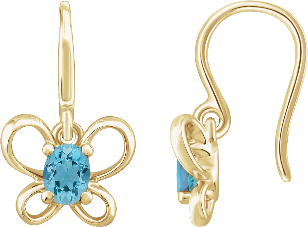 14K Yellow 4x3 mm Oval March Youth Butterfly Birthstone Earrings