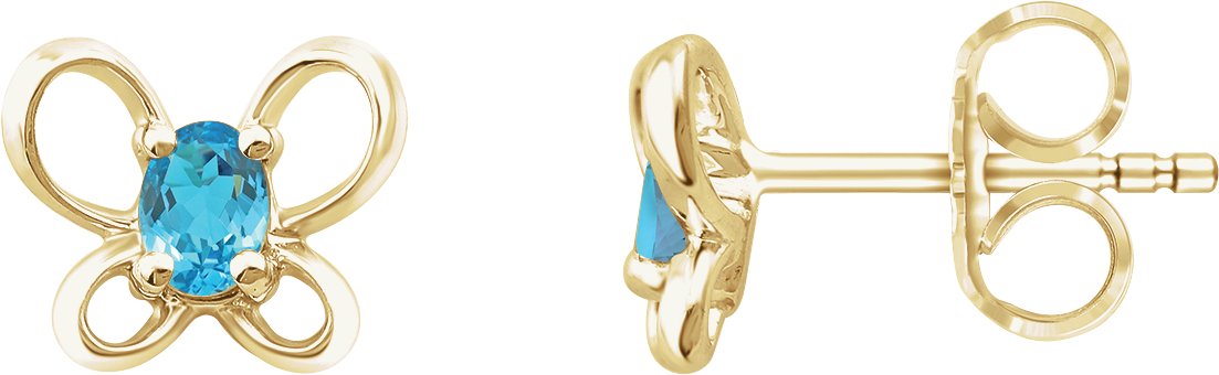 14K Yellow 4x3 mm Oval March Youth Butterfly Birthstone Earrings