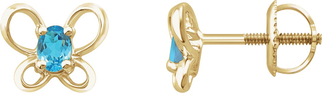 14K Yellow 4x3 mm Oval March Youth Butterfly Birthstone Earrings