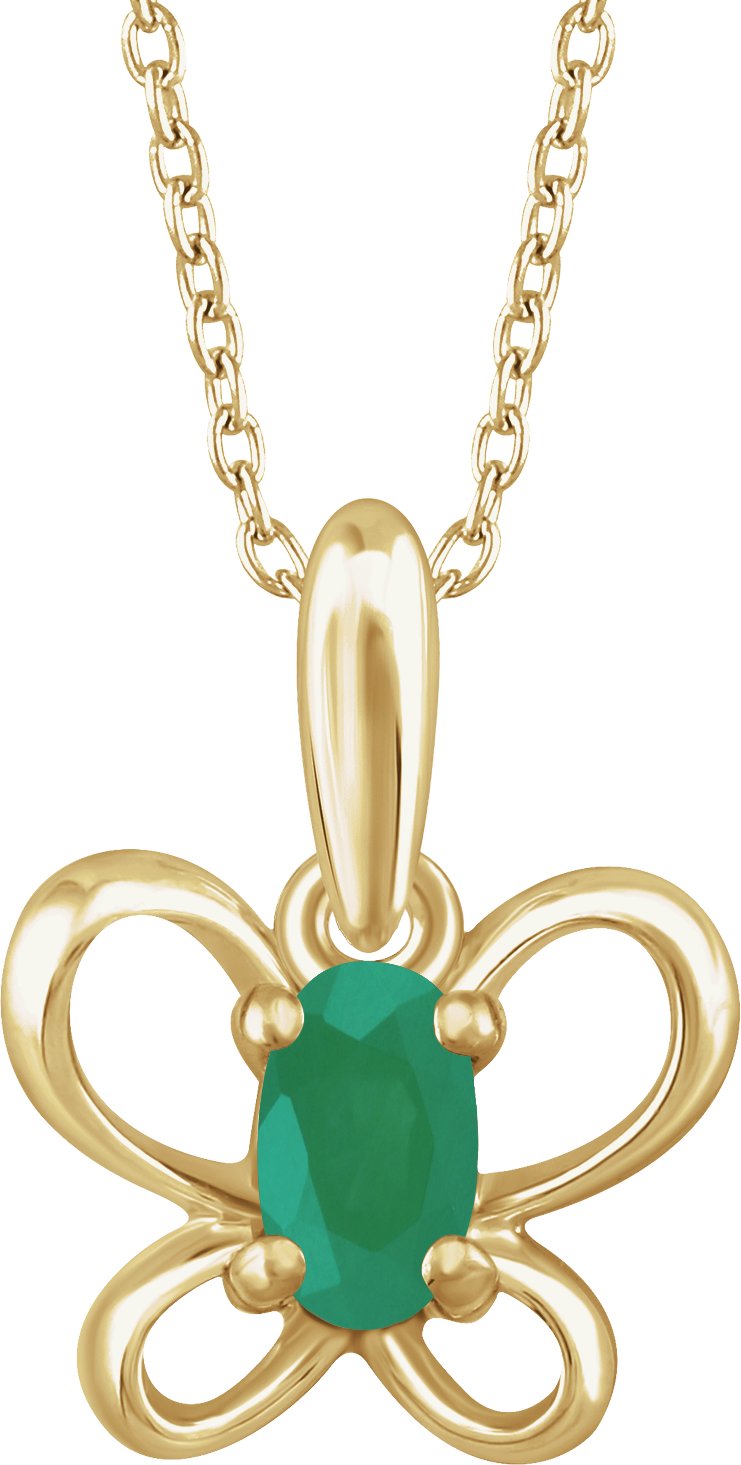 14K Yellow 4x3 mm Oval May Youth Butterfly Birthstone 15 inch Necklace