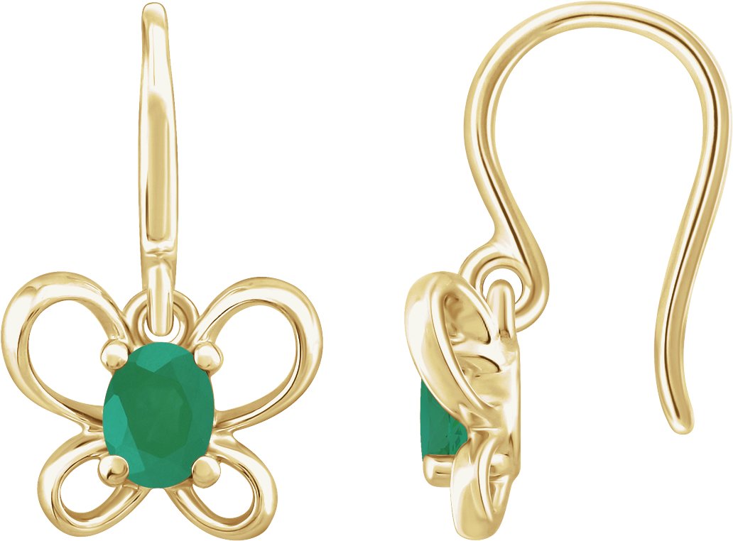 14K Yellow 4x3 mm Oval May Youth Butterfly Birthstone Earrings