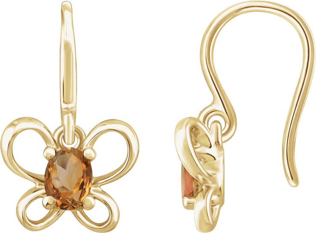 14K Yellow 4x3 mm Oval November Youth Butterfly Birthstone Earrings