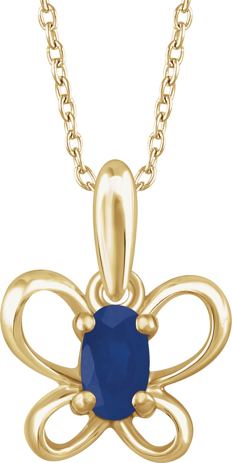14K Yellow 4x3 mm Oval September Youth Butterfly Birthstone 15 inch Necklace