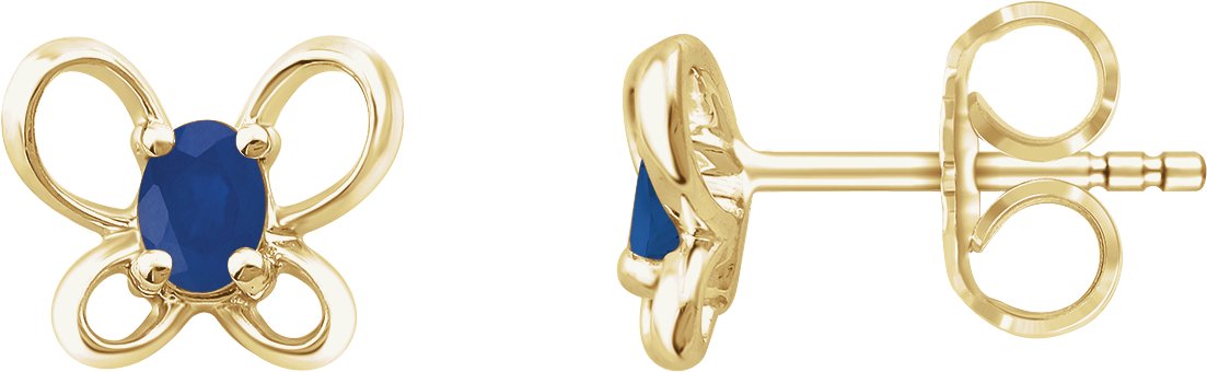 14K Yellow 4x3 mm Oval September Youth Butterfly Birthstone Earrings