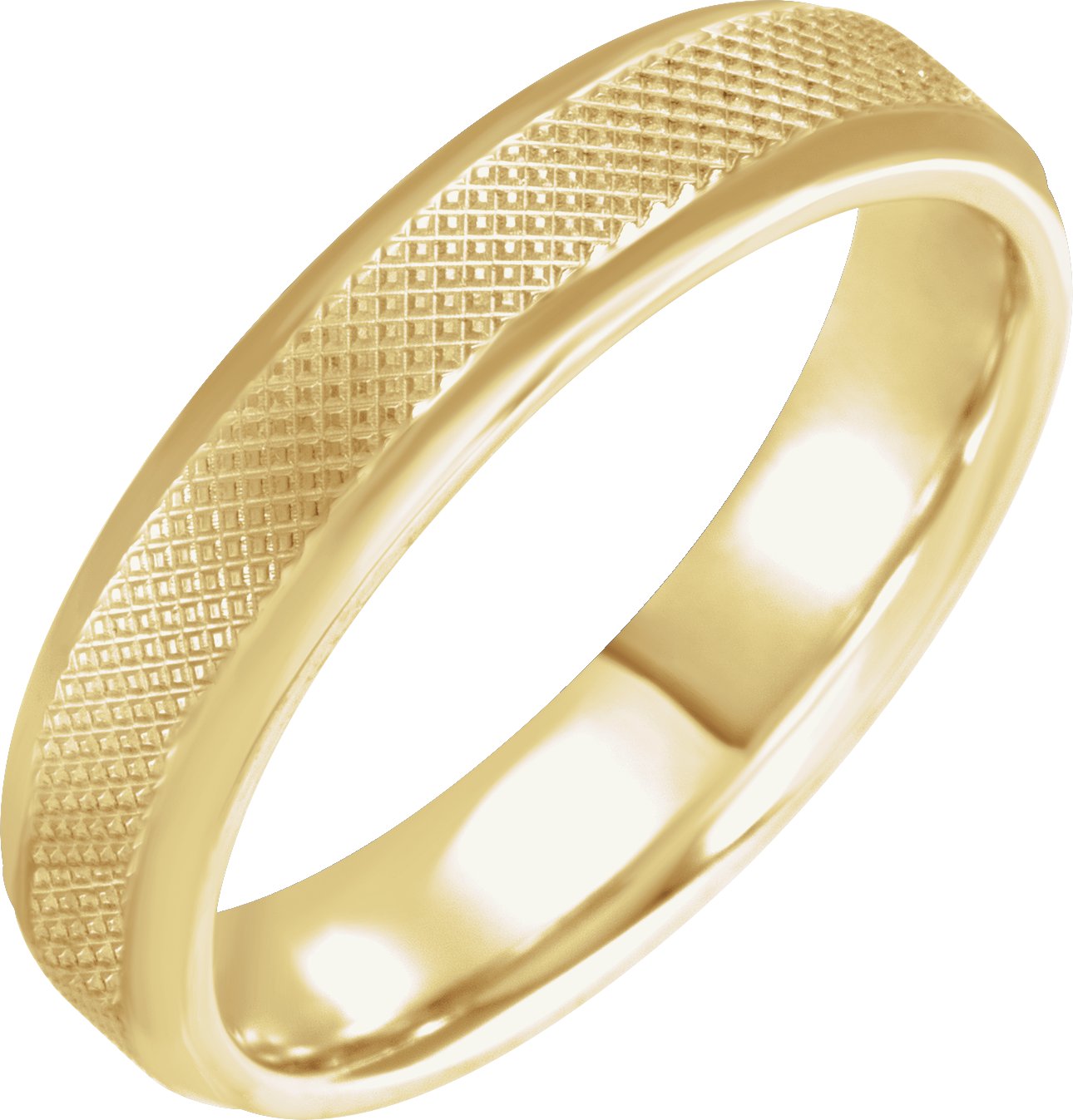 Description: Comfort-Fit Knurled Beveled Edge Band