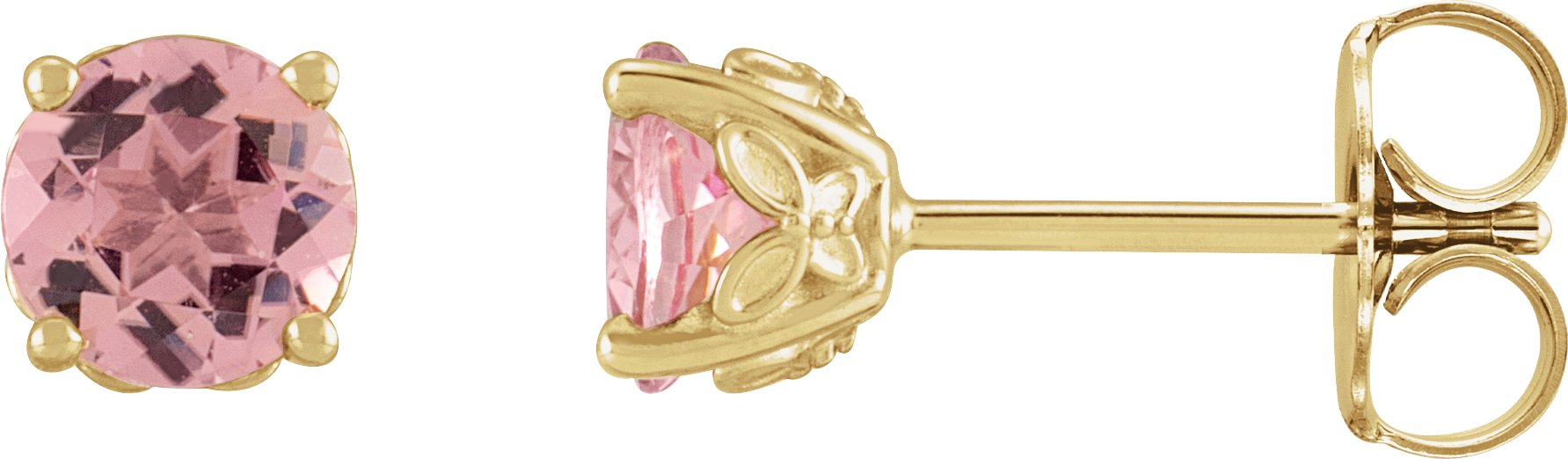 Description: Natural Pink Tourmaline 4-Prong Basket Earrings