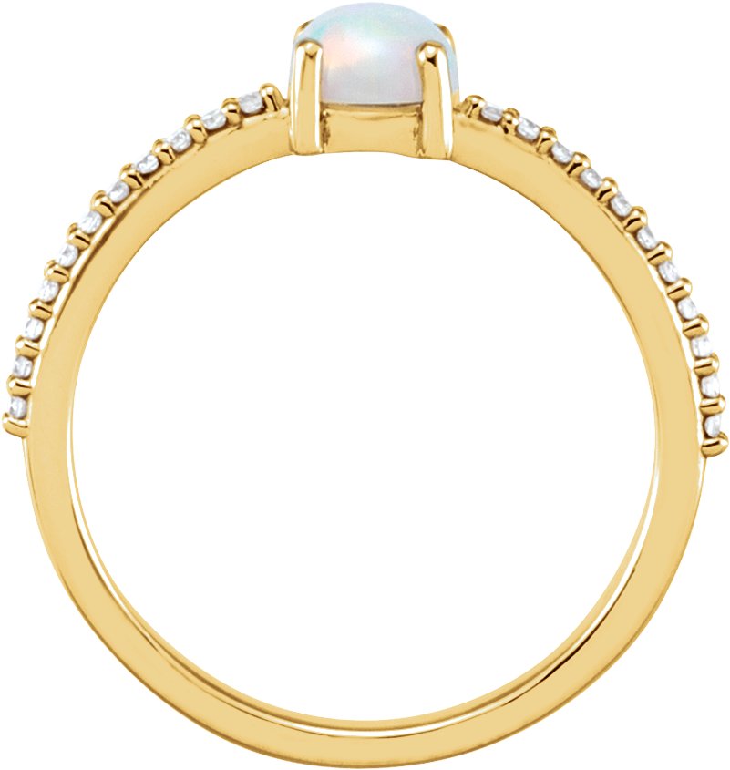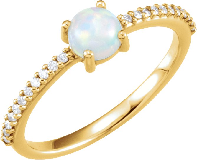 14K Yellow 5 mm Round Cabochon Chatham Created Opal & 1/8 CTW Diamond Ring