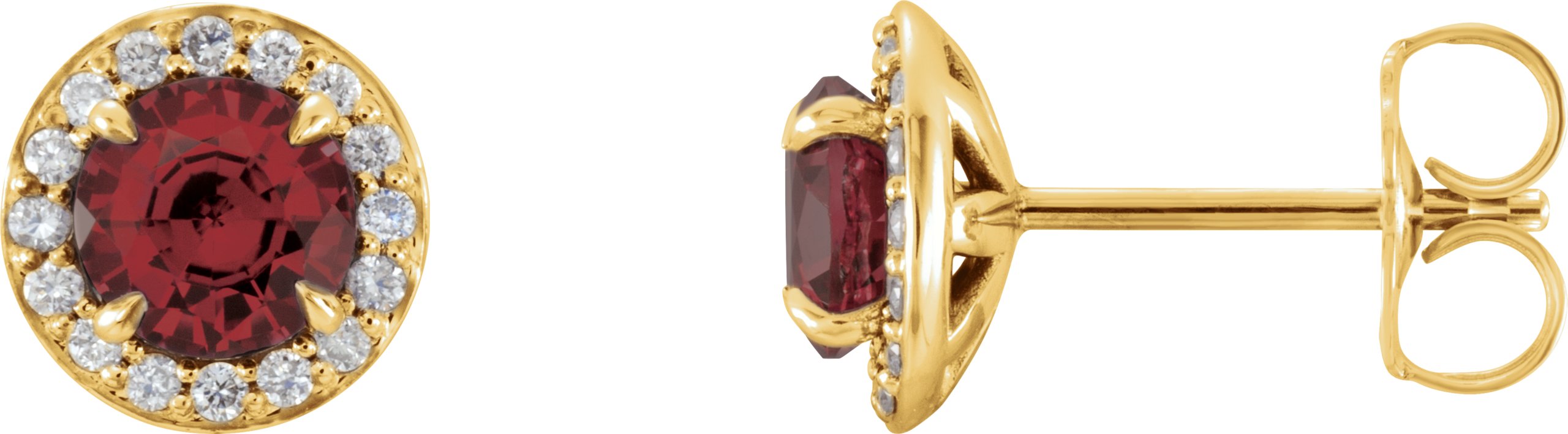 Description: Genuine Mozambique Garnet And 1/8 Ctw Diamond Halo-Style Earrings