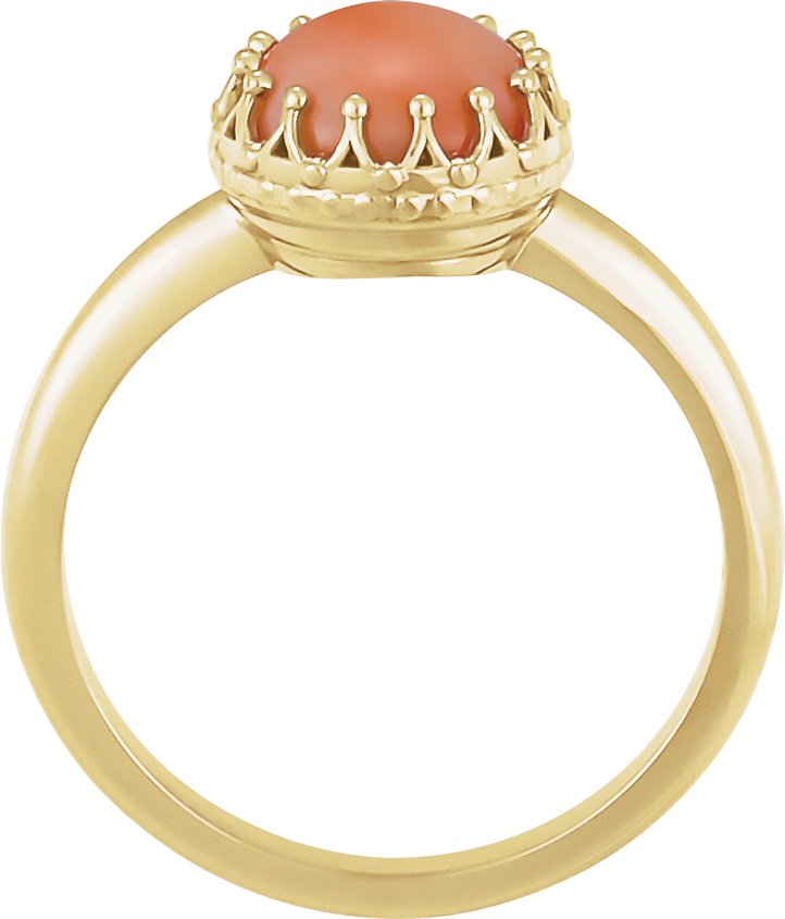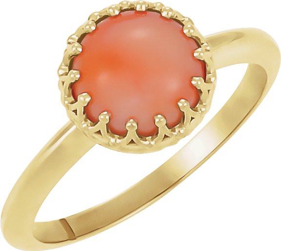 14K Yellow 5 mm Round Pink Coral Ring