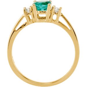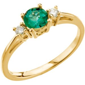 14K Yellow 5.2 mm Round Emerald and .08 CTW Diamond 3 Stone Ring
