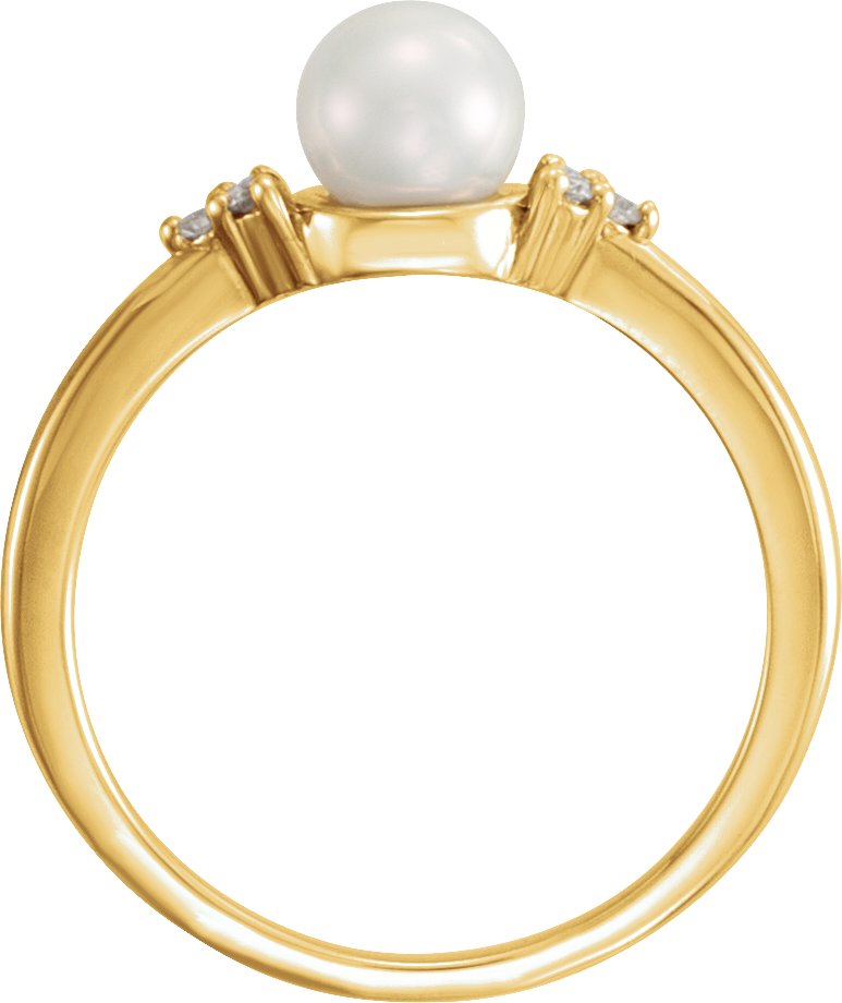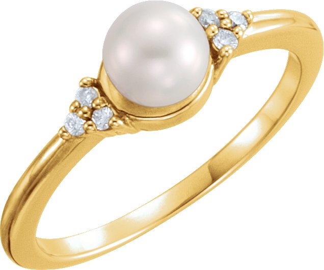 14K Yellow 5.5 6 mm Freshwater Cultured Pearl & .06 CTW Diamond Ring