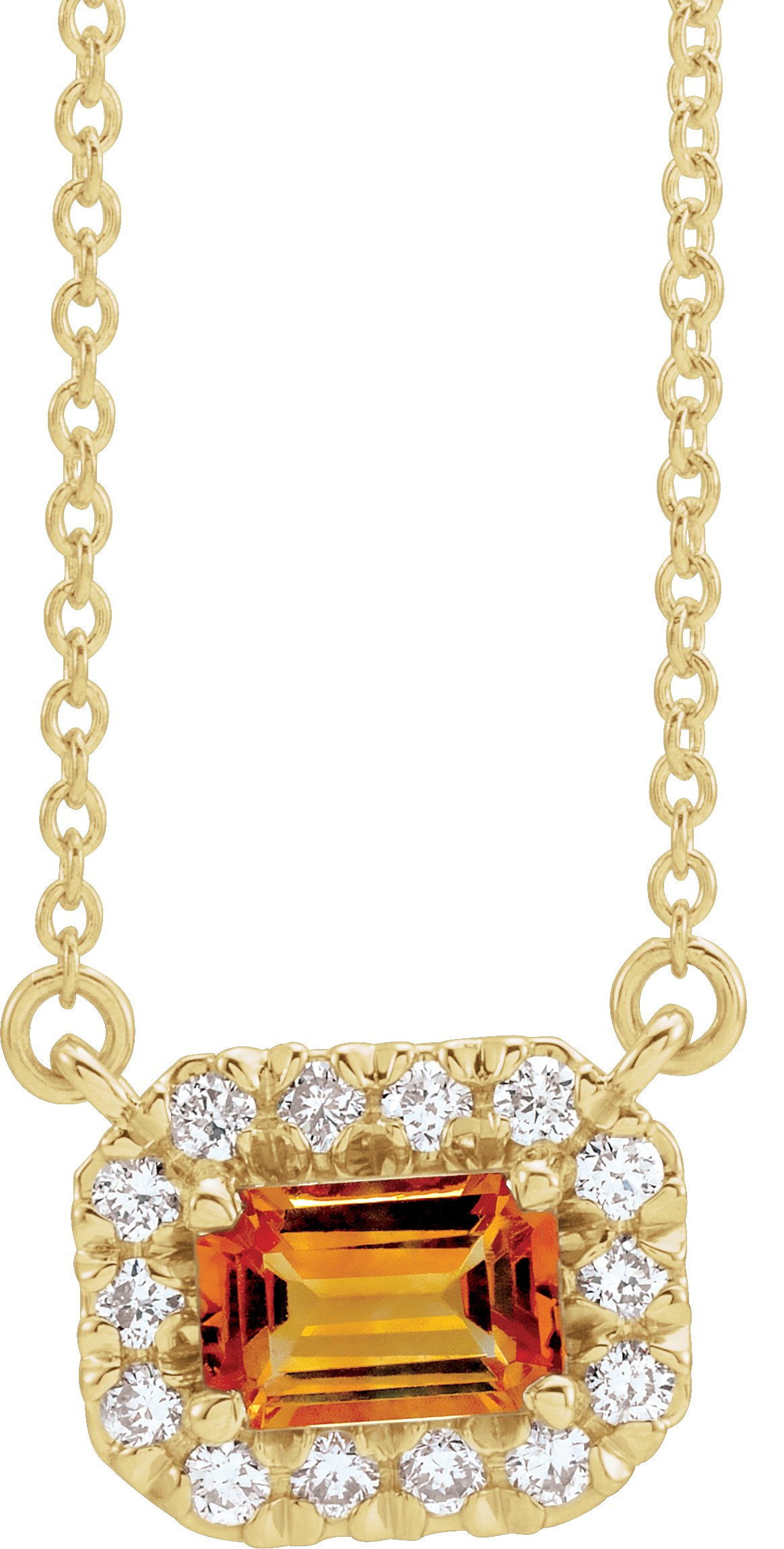 14K Yellow 5x3 mm Emerald Citrine & 1/8 CTW Diamond 18 inch Necklace