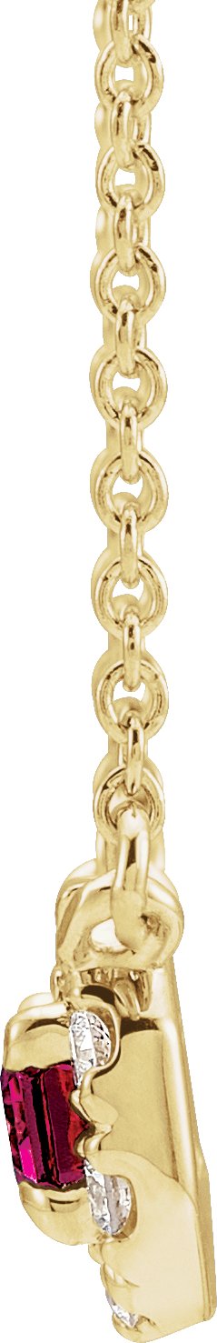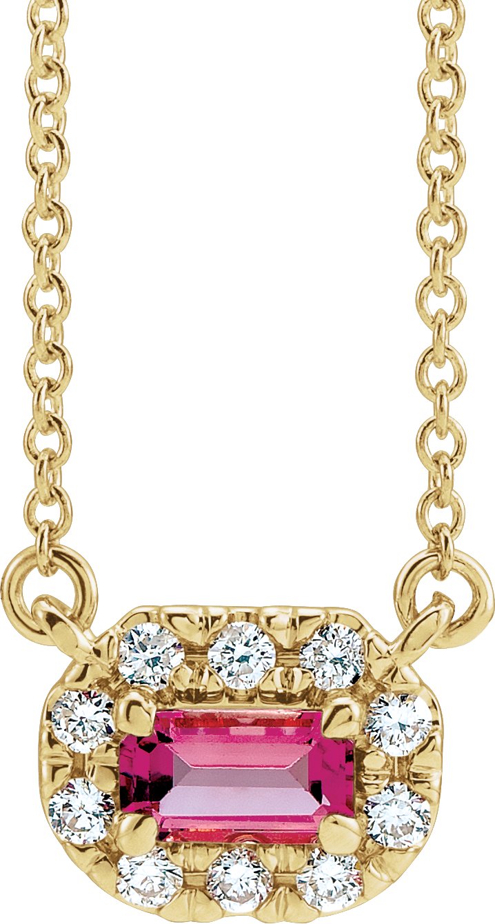 14K Yellow 5x3 mm Emerald Pink Tourmaline & 1/8 CTW Diamond 16 inch Necklace