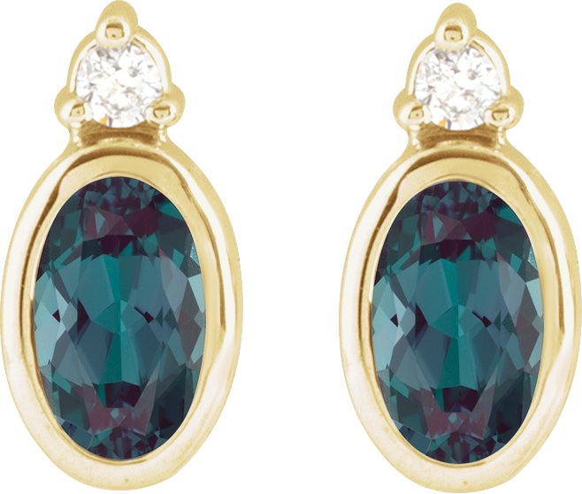 14K Yellow 5x3 mm Lab-Grown Alexandrite & .03 CTW Natural Diamond Earrings