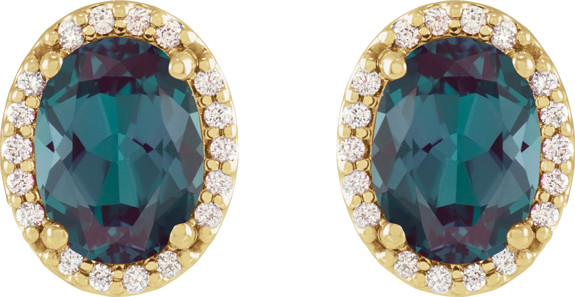 14K Yellow 5x3 mm Lab Grown Alexandrite and .04 CTW Natural Diamond Halo Style Earring Ref 19705893