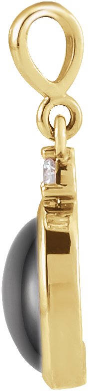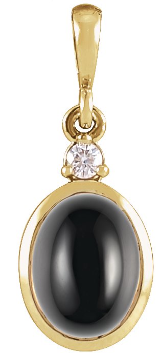 14K Yellow 5x3 mm Natural Black Onyx & .02 CT Natural Diamond Cabochon Pendant