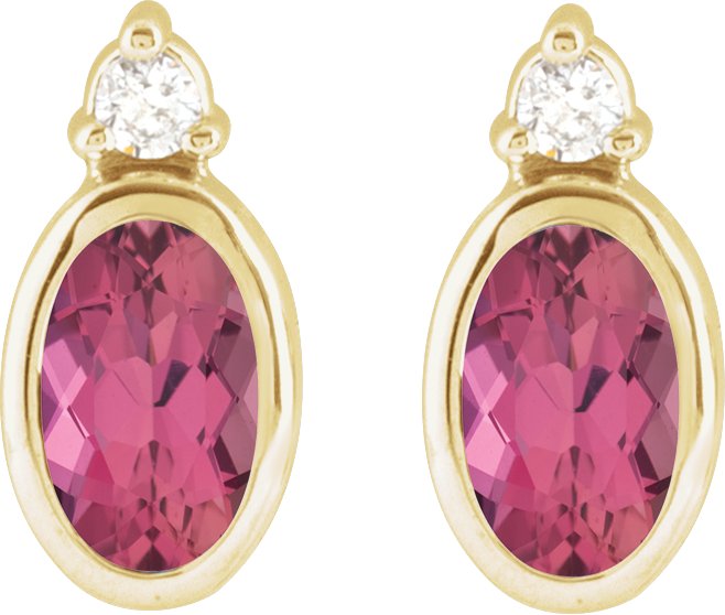 14K Yellow 5x3 mm Natural Pink Tourmaline & .03 CTW Natural Diamond Earrings