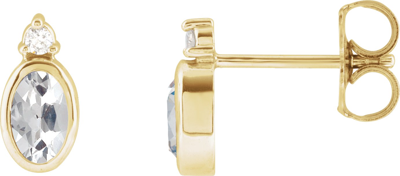 14K Yellow 5x3 mm Natural White Sapphire & .03 CTW Natural Diamond Earrings