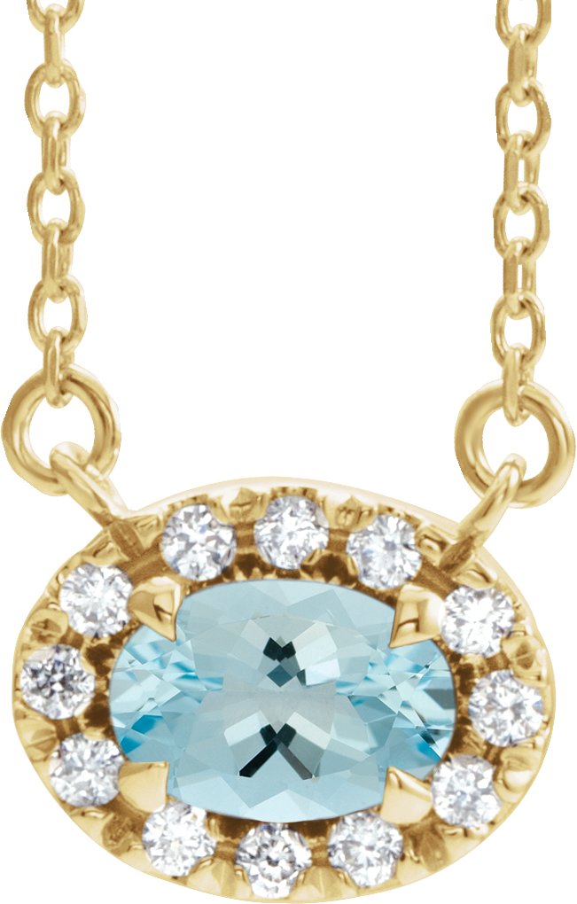 14K Yellow 5x3 mm Oval Aquamarine & .05 CTW Diamond 16 inch Necklace