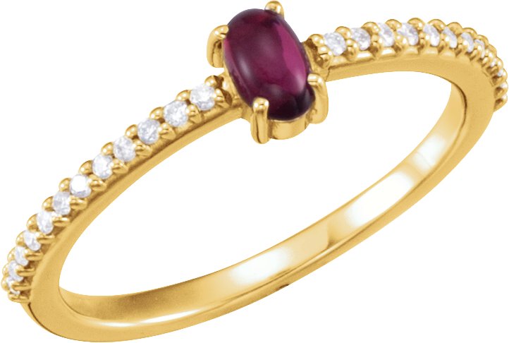14K Yellow 5x3 mm Oval Cabochon Pink Tourmaline & 1/8 CTW Diamond Ring