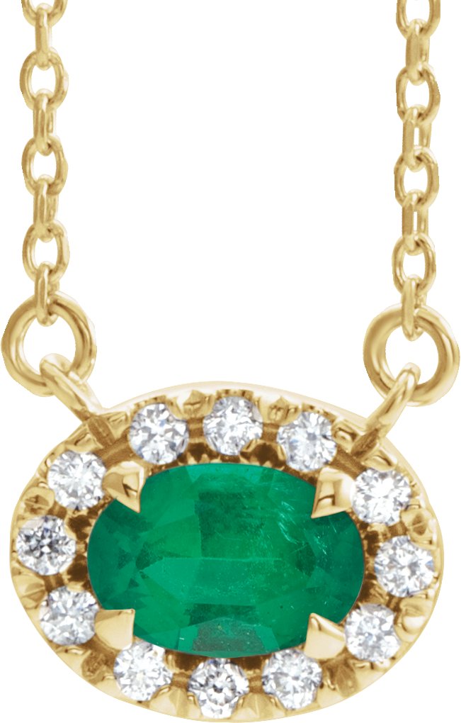 14K Yellow 5x3 mm Oval Emerald & .05 CTW Diamond 16 inch Necklace