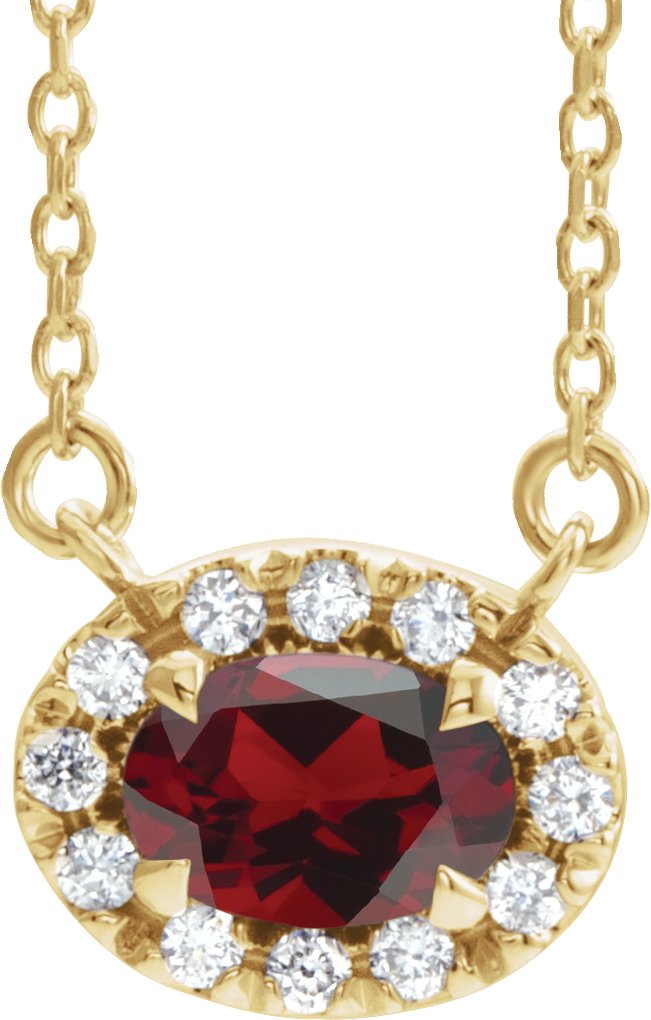 14K Yellow 5x3 mm Oval Mozambique Garnet & .05 CTW Diamond 18 inch Necklace
