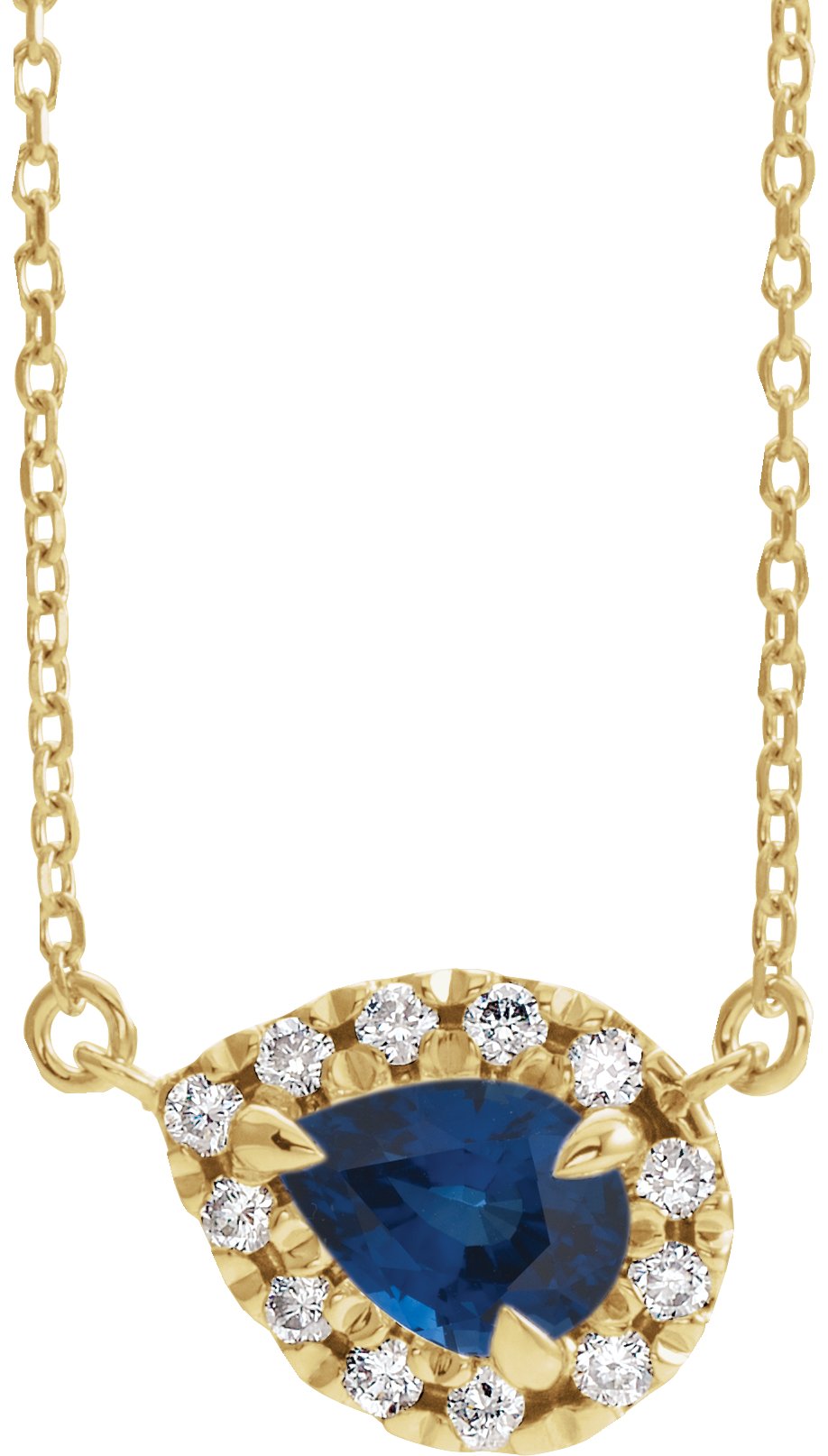 14K Yellow 5x3 mm Pear Chatham Lab Created Blue Sapphire & 1/8 CTW Diamond 18" Necklace Ref. 16213079
