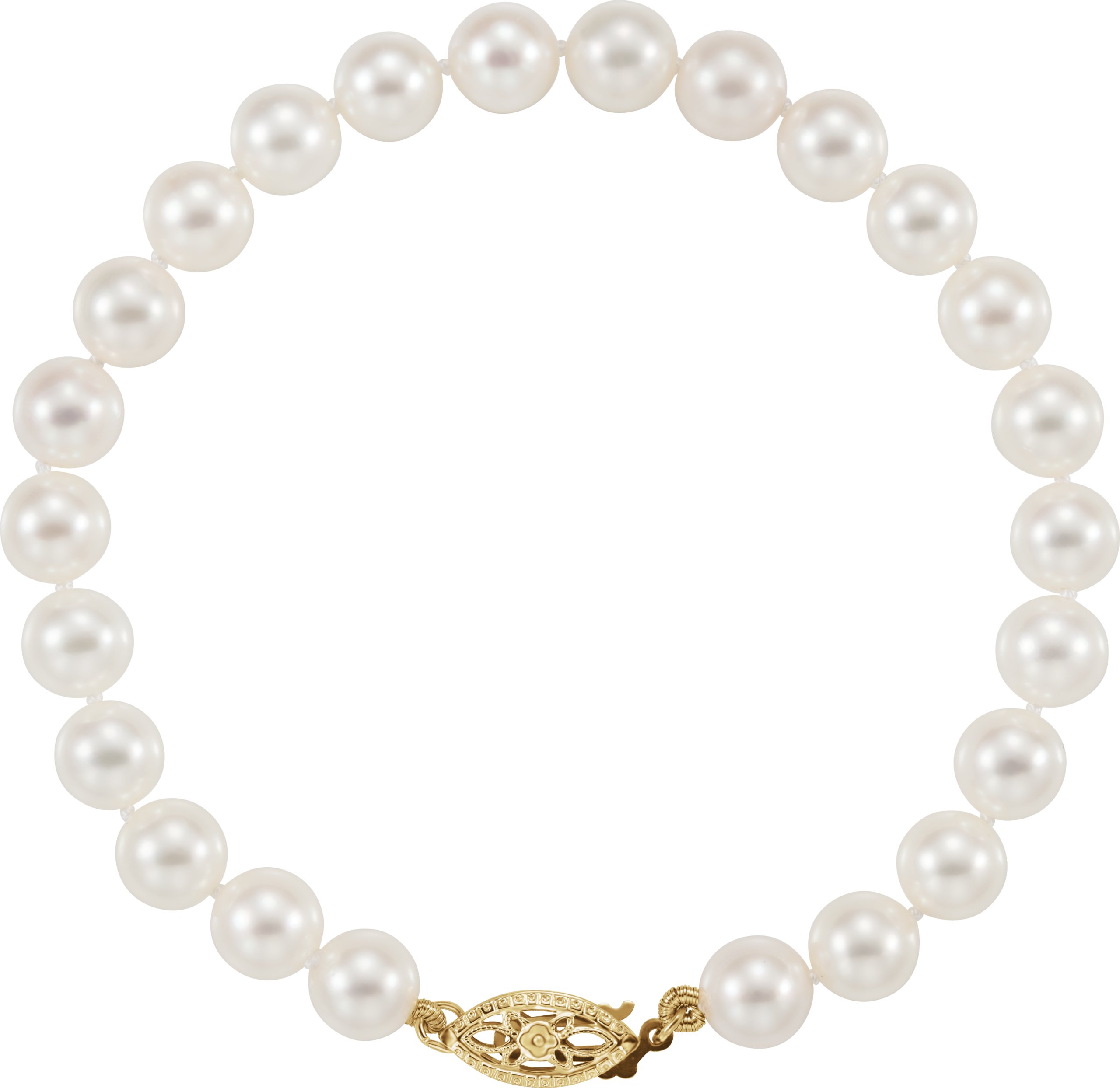 14K Yellow 6 6.5 mm Akoya Cultured Pearl 7 inch Bracelet