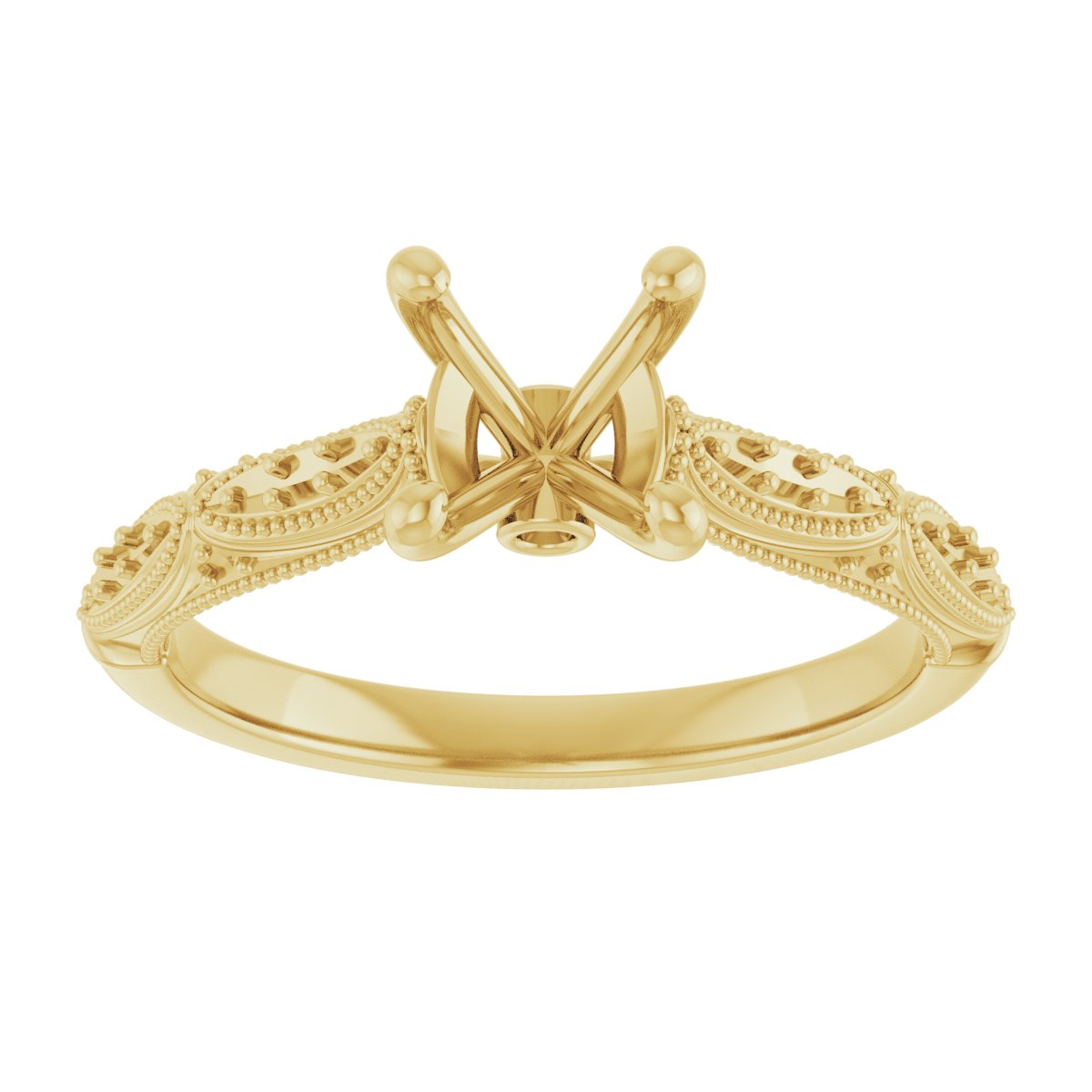 14K Yellow 6 mm Cushion Forever One™ Moissanite & 1/10 CTW Diamond Engagement Ring