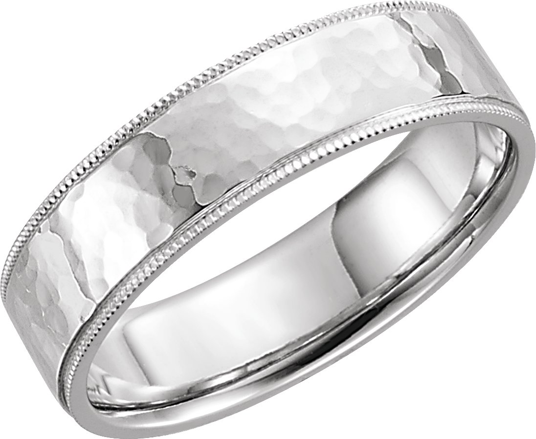 Description: Flat Comfort-Fit Milgrain And Hammer Finish