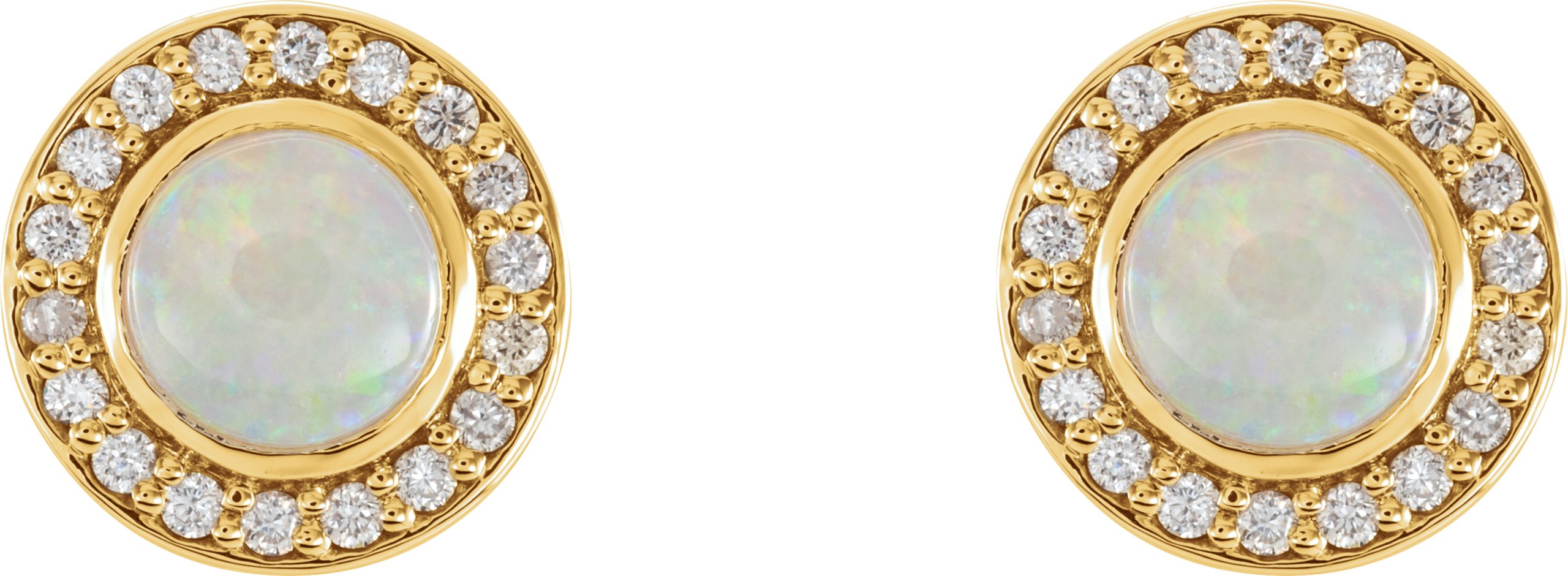 14K Yellow 6 mm Opal and .20 CTW Diamond Halo Style Earrings