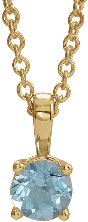 14K Yellow 6 mm Round Aquamarine Birthstone 16 18 inch Necklace