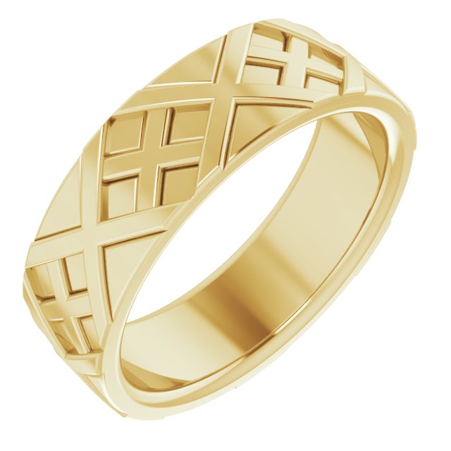 14K Yellow 6.4 mm X Pattern Design Band Size 8 Ref 12750623