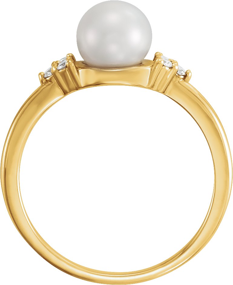 14K Yellow 6.5 7 mm Freshwater Cultured Pearl & .09 CTW Diamond Ring