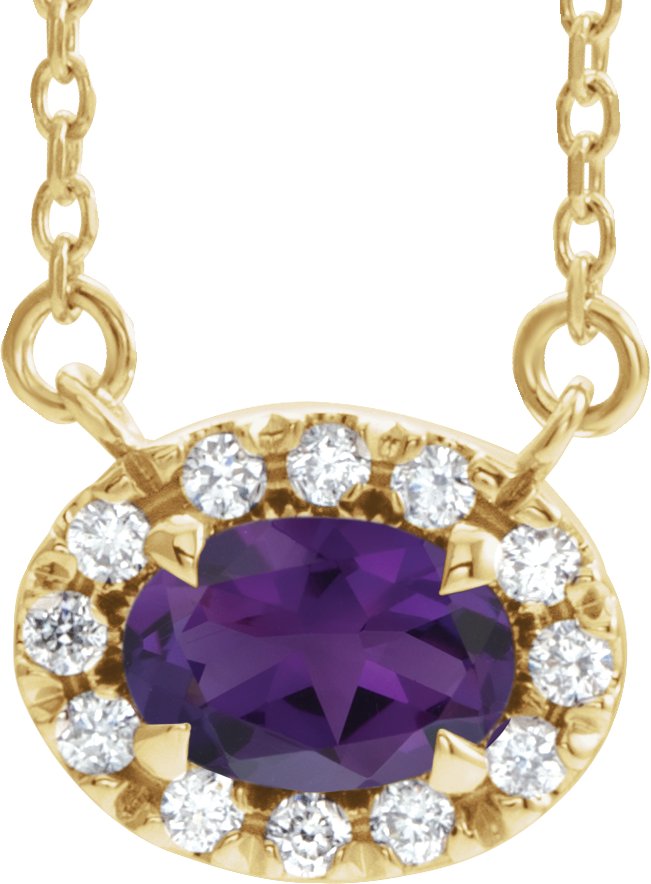 14K Yellow 6x4 mm Oval Amethyst & 1/10 CTW Diamond 18 inch Necklace