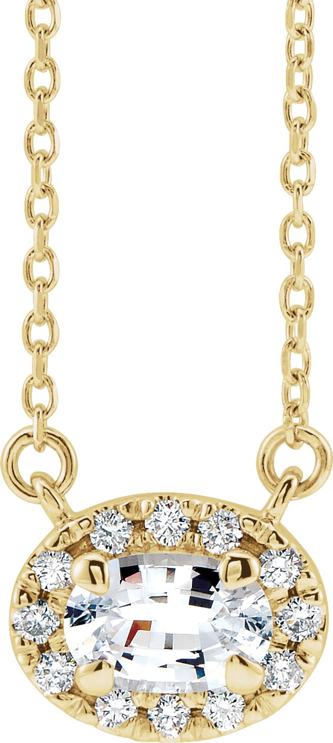 14K Yellow 6x4 mm Oval White Sapphire & 1/10 CTW Diamond 18 inch Necklace