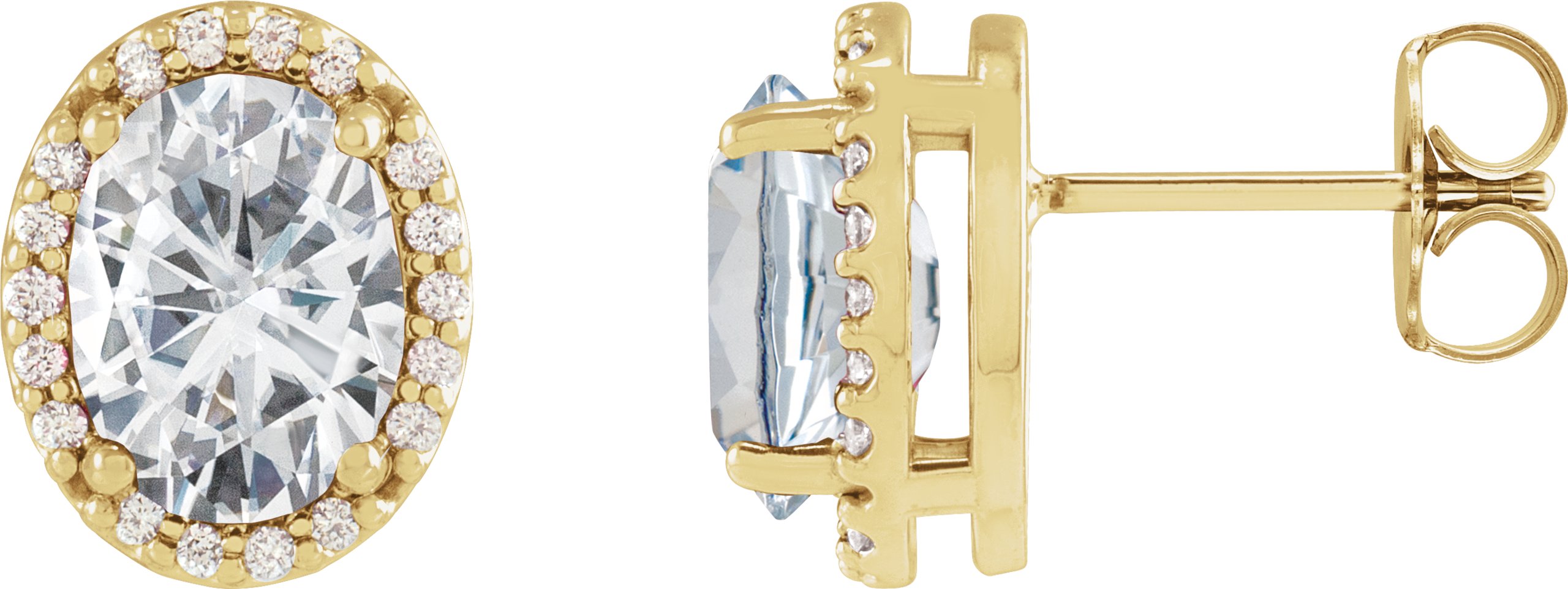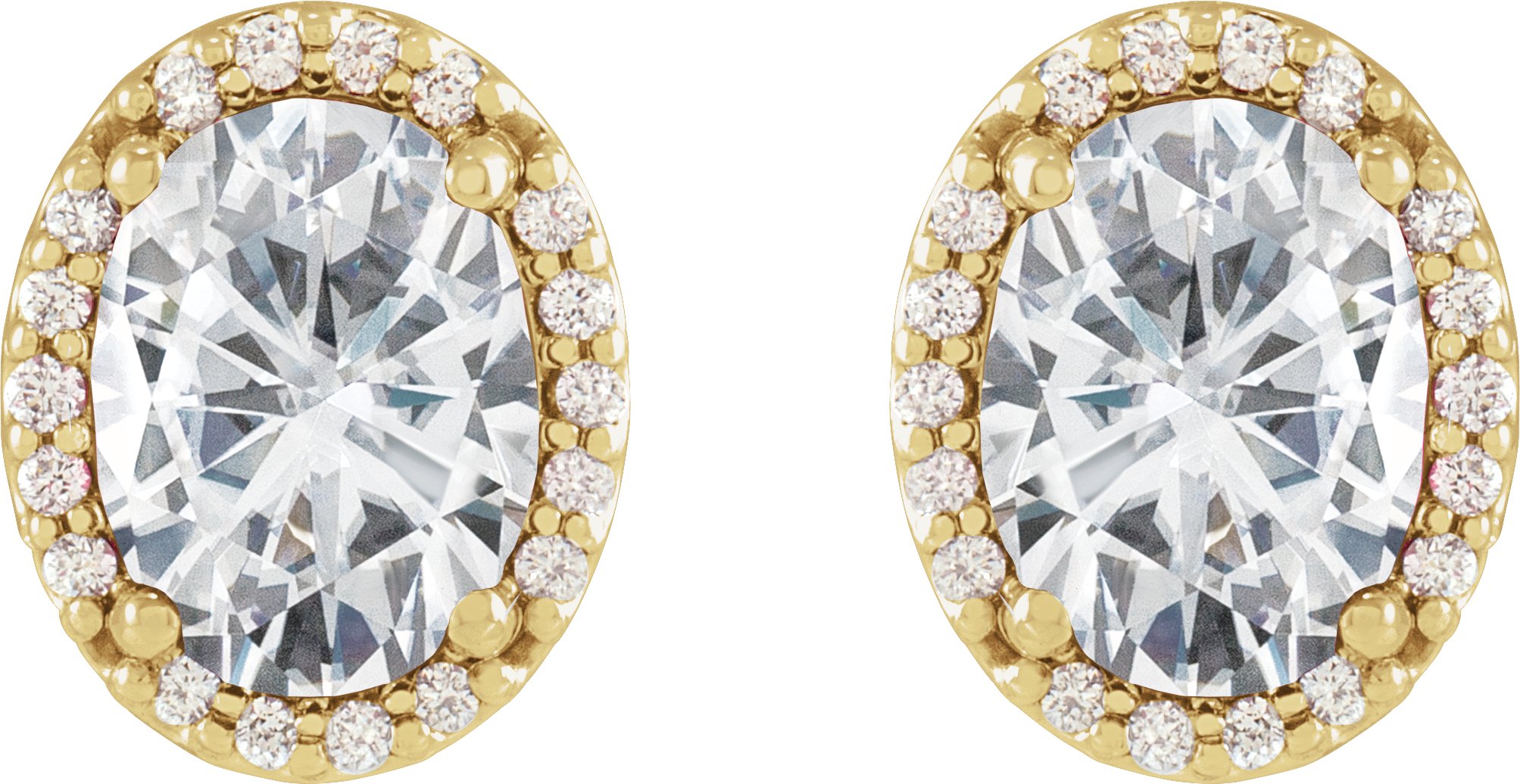 14K Yellow 6x4 mm Stuller Lab Grown Moissanite and .06 CTW Natural Diamond Halo Style Earring Ref 19705937