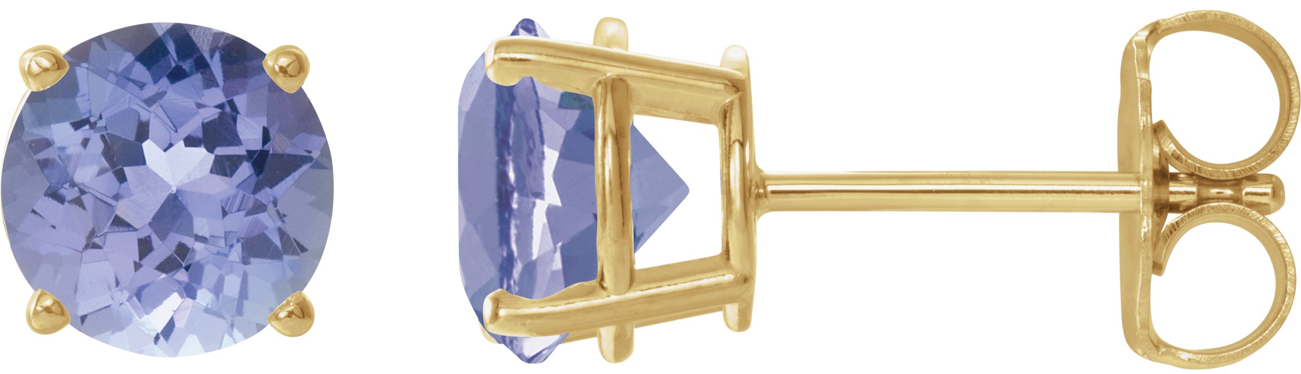 14K Yellow 7 mm Natural Tanzanite Stud Earrings