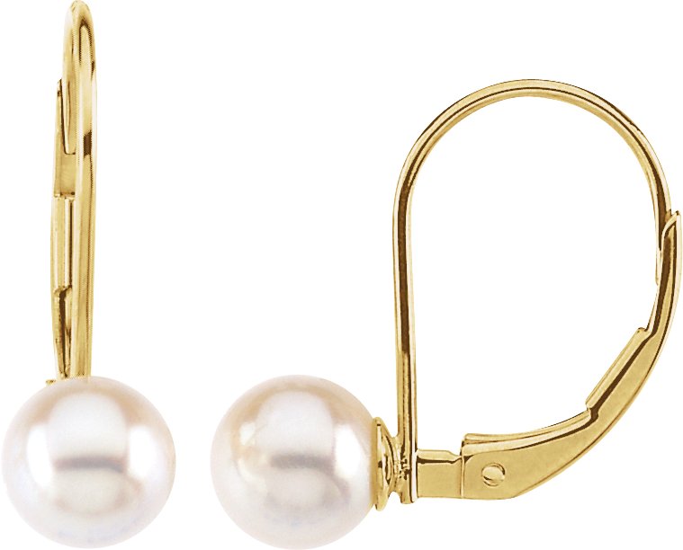 14K Yellow 7 mm Round Akoya Cultured Pearl Lever Back Earrings