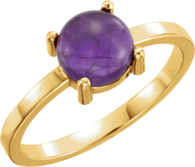 14K Yellow 7 mm Round Amethyst Cabochon Ring