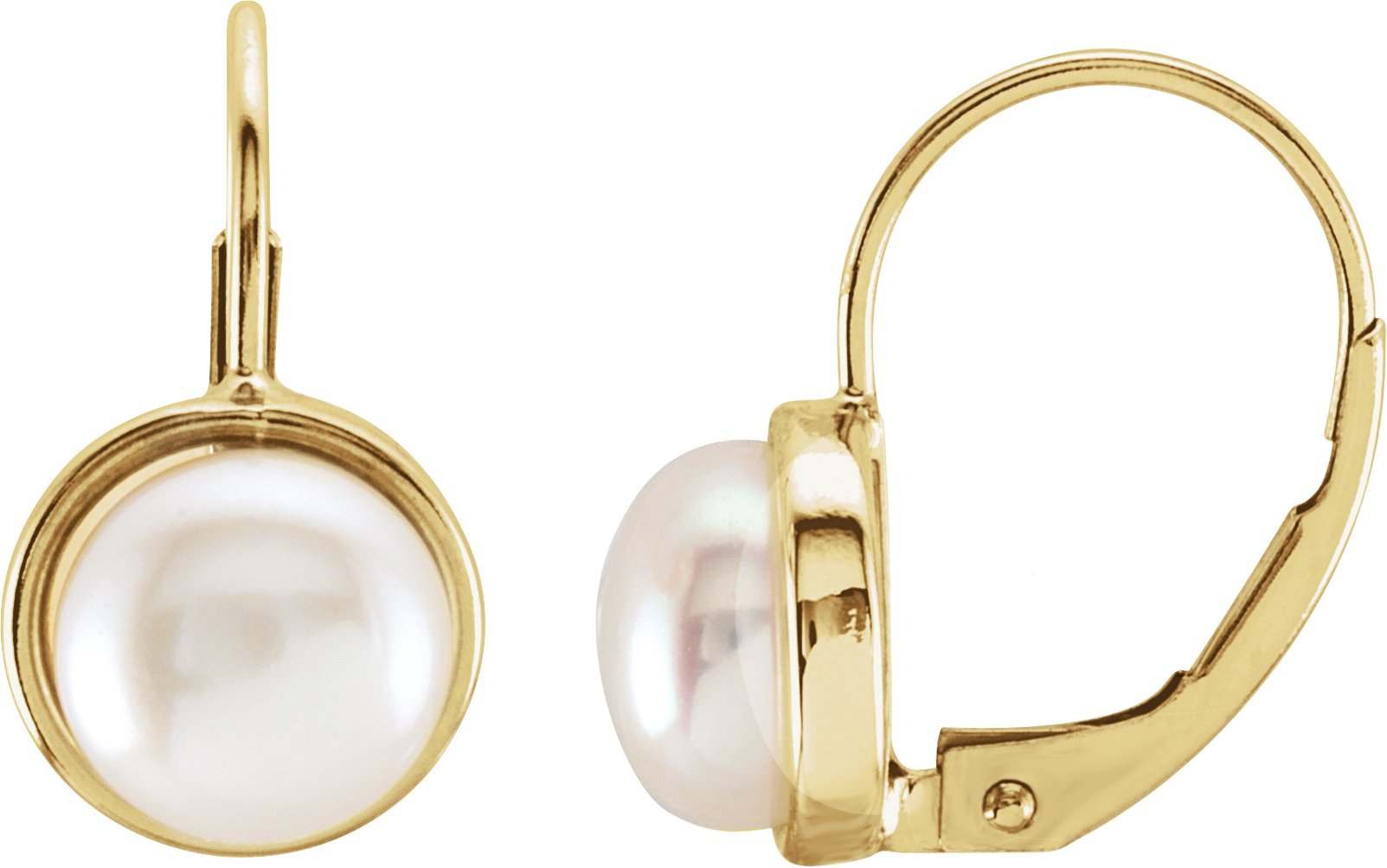 14K Yellow 7.5 mm Freshwater Cultured Pearl Lever Back Earring Each. You need to order 2 pieces for a pair of earrings.