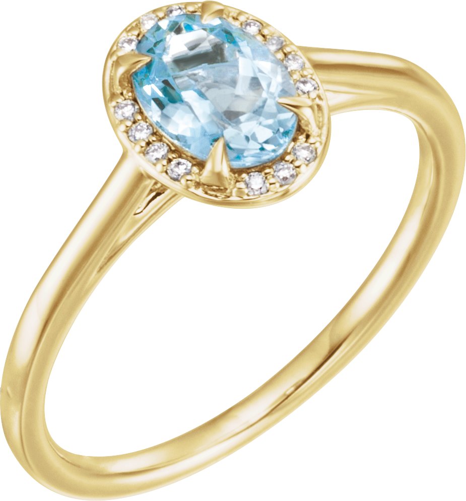 14K Yellow 7x5 mm Oval Aquamarine & .04 CTW Diamond Ring