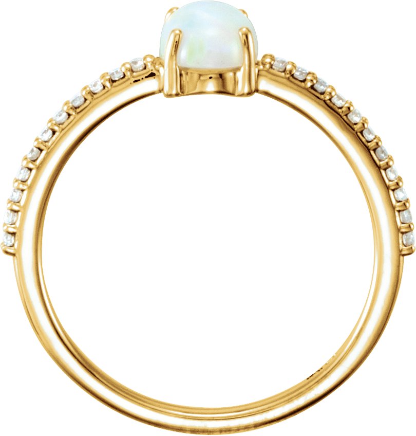 14K Yellow 7x5 mm Oval Cabochon Chatham Created Opal & 1/10 CTW Diamond Ring